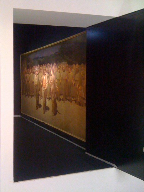 Inutile nasconderlo: è una icona, forte e forse la più forte del ventesimo secolo italiano, talvolta tanto forte da limitarne la sua potenza che va oltre il fortunato dato iconografico. E’ un’opera che intenzionalmente ti avvicina, si presenta nella mente di chi la guarda come un “affresco composto da un bagaglio figurativo diffuso”. Qualcuno oltre al pittore lo capì subito. Giovanni Cena a Pellizza da Volpedo: “Ammiro. E’ una cosa che resterà e che non ha paura del tempo perché il tempo le gioverà. Ti Abbraccio con tutta l’anima”. Il passo della lettera del 1902 è stato scelto da Aurora Scotti nell’Introduzione al Volume Il quarto stato a cura di A.Scotti e ripreso nel saggio “Dentro e oltre l’immagine di un mito” di  Maria Fratelli – conservatore della GAM di Milano – in occasione di una mostra a Palazzo Reale voluta da Vittorio Sgarbi, il mio terzo incontro con l’opera.