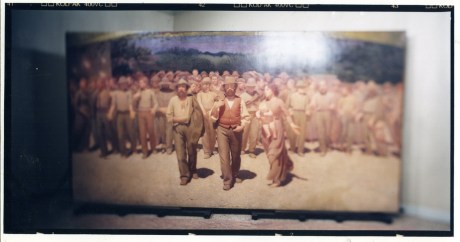 Le tracce della polvere mi portano al primo incontro in occasione della mostra per “Il Futurismo a Milano, anticipazioni per il nuovo Museo d’arte Moderna e Contemporanea” allestita da me insieme a Italo Rota e a Emmanuele Auxilia al PAC di Milano. La visione che ci mostra nella foto Olivo Barbieri sfocata, polverosa bene interpreta la lunga marcia che dovranno compiere i protagonisti del Quarto Stato e i visitatori; marcia che trova una strada fisica che parte dal quadro messo a terra nell’installazione di Stefano Arienti per raggiungere le sale del Padiglione d’Arte Contemporanea di Ignazio Gardella. Dopotutto il movimento è l’essenza stessa dello spazio suggerito dal quadro. E questo movimento è fatto di incontri.