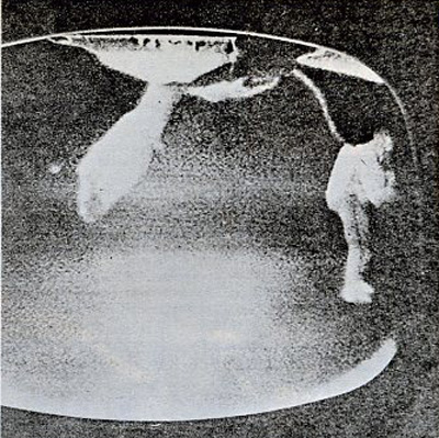 Il 18 marzo del 1965, quarantatre anni fa, il cosmonauta russo Aleksey Leonov lasciò la navicella spaziale per fare la prima passeggiata umana nel cosmo. L’immagine d’apertura è la prima foto conosciuta (in occidente) di un cosmonauta che cammina nello spazio e che poi è stata pubblicata in una rivista americana del 1976 riprodotta qui sotto.